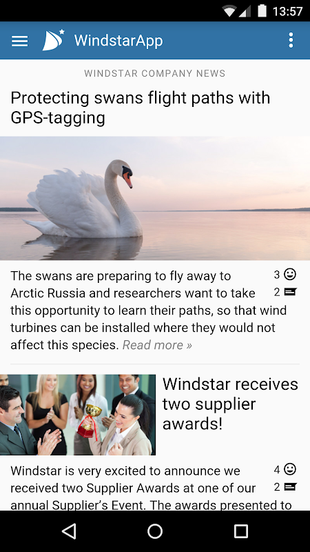 • News feed: Stay up-to-date with the latest news about Windstar. Get notifications for new articles via push or email on the go.