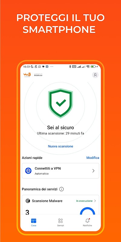 WINDTRE Security Pro+ keeps your Android device safe from all online threats.