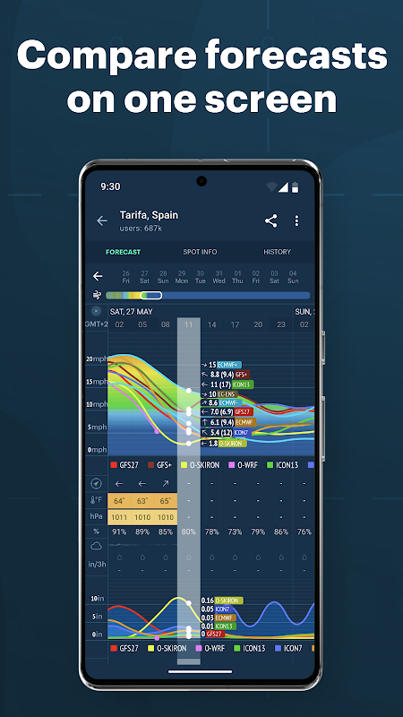 ✔ Variety of forecast models: GFS, ECMWF, WRF8, AROME, ICON, NAM, Open Skiron, Open WRF, HRRR (more details: https://windy.app/guide/windy-app-weather-forecast-models.html)