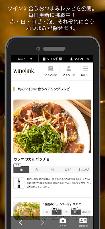 Wine-Link (Wine Link) By reading the dedicated "grape mark" attached to the wine with the camera, you can easily get information about wine, such as wine information, wine producer information, recipes that match wine, and more! Currently, the grape mark for Wine-Link cameras is displayed on the back label of about 1 million types of wine, the wine menu of restaurants, and the POP of liquor stores.