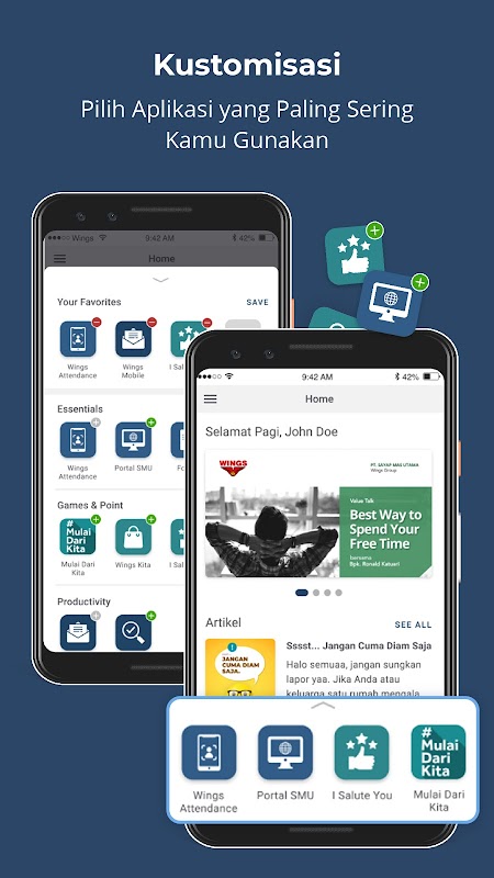 Application that connects to other applications that employees need such as approval, employee order WINGS Kita, employee attendance, audit system, gamification, employee appreciation one another in I Salute You.