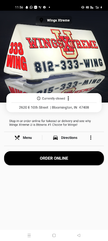 Wings Xtreme restaurant app has many different functions. It contains an online ordering link, restaurant images, address and driving directions, store hours, menus, and many other great features.