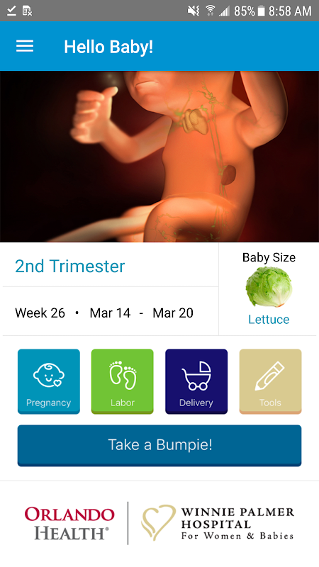 The Orlando Health Winnie Palmer Pregnancy App is your number one app for all things baby. From your first trimester through delivery, our Winnie Palmer Hello Baby Pregnancy App will give you medically trusted information and useful pregnancy tools for each stage of your pregnancy. Watch your baby grow with medically accurate depictions of your baby. Count kicks and time your contractions with our easy to use pregnancy tools. It is the best pregnancy app for expecting mothers who are considering having their baby at Orlando Health Winnie Palmer Hospital for Women and Babies.