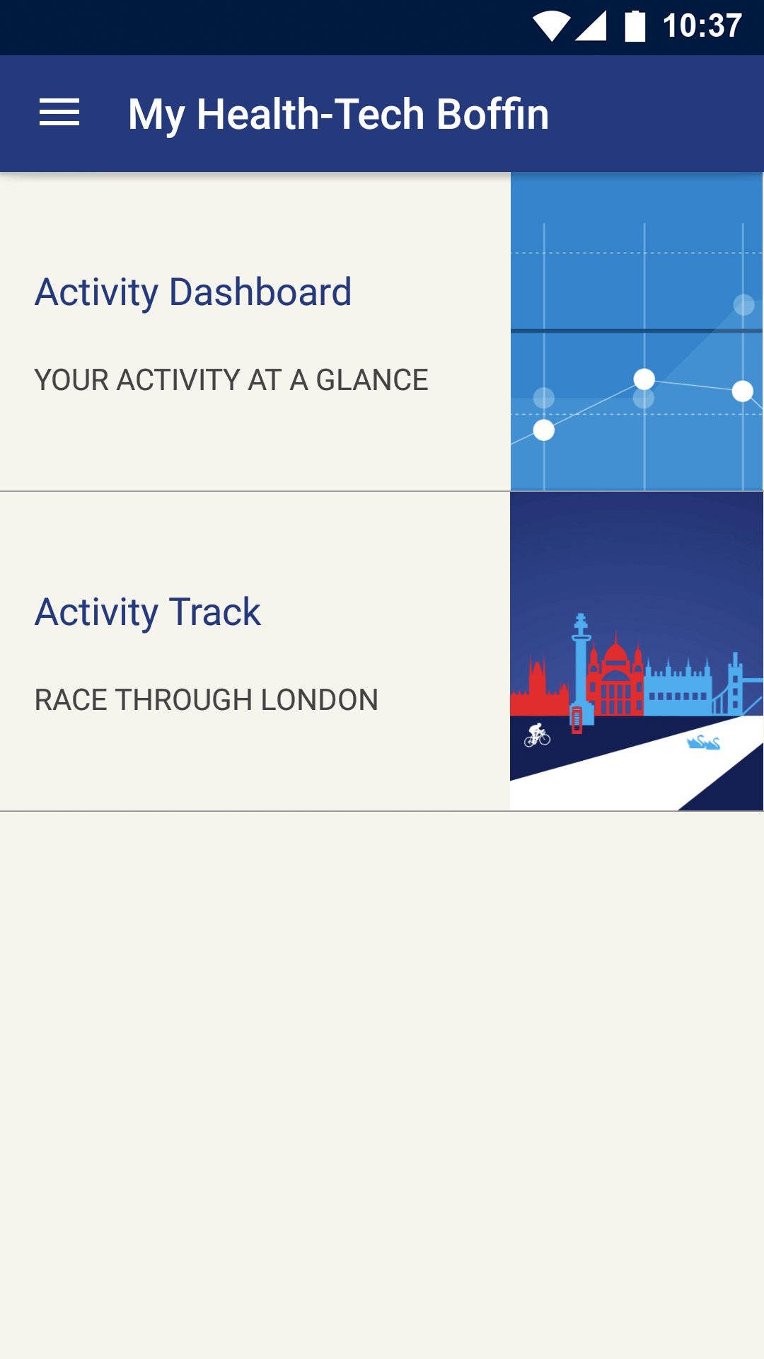 • My Health Tech Boffin: Track your activity over time on our dashboard – graphical representation of steps and distance when the User registers their device. Supported devices are FitBit, Garmin and Jawbone. Download our fun game that has you running around London to earn rewards to drive your activity and compete against the app. Sync one of three devices, FitBit, Garmin or Jawbone to track your progress.
