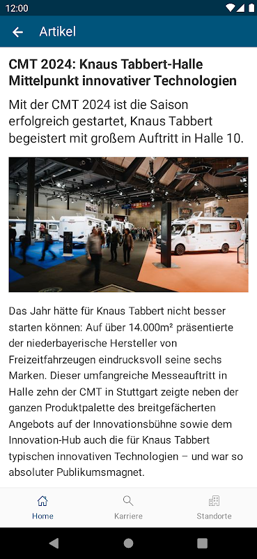 • News - Stay up to date with the latest news. With push notifications you can immediately see what exciting news is available from the world of Knaus Tabbert AG.
