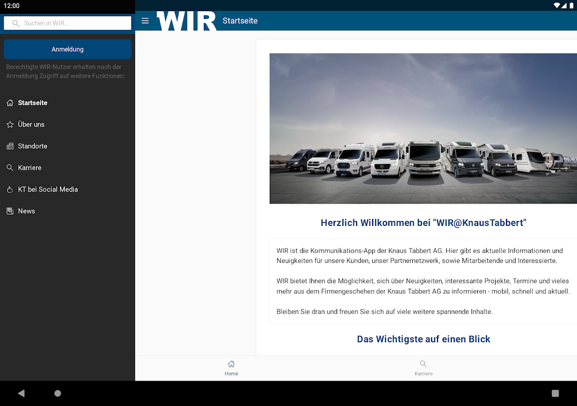 WIR offers you the opportunity to find out about news, interesting projects, dates and much more from Knaus Tabbert AG's company activities - mobile, fast and up-to-date.