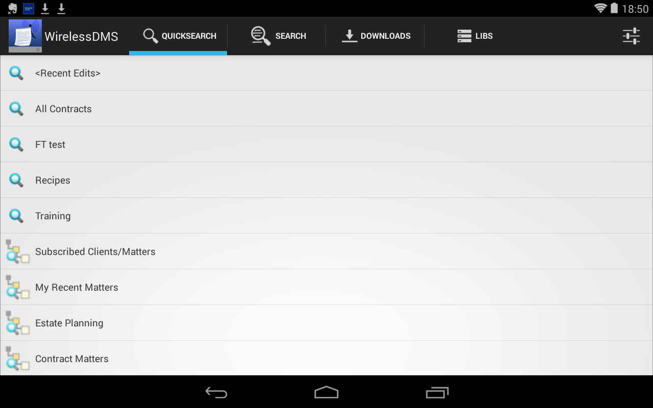 The WirelessDMS Client for Android is an eDOCS DM client from Matrix Logic.