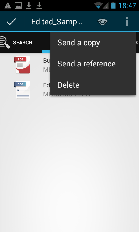 - Documents can be emailed as an attachment or a reference or viewed on the device.
