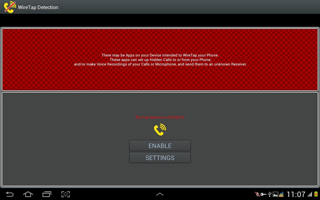 This App - "WireTap Detection" - will protect you from being spied on in these ways, by Detecting all attempts to Tap your Phone. Before you want to make a Recording yourself - or a VoIP (e.g. Skype) Call - simply touch a button to DISABLE the App.