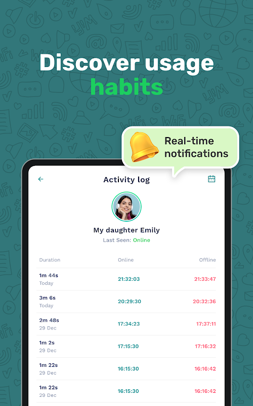 From monitoring your loved ones’ last seen status and controlling your own messaging apps usage to managing your children’s screen time, LastSeen Checker is letting you know what’s up at any given moment.