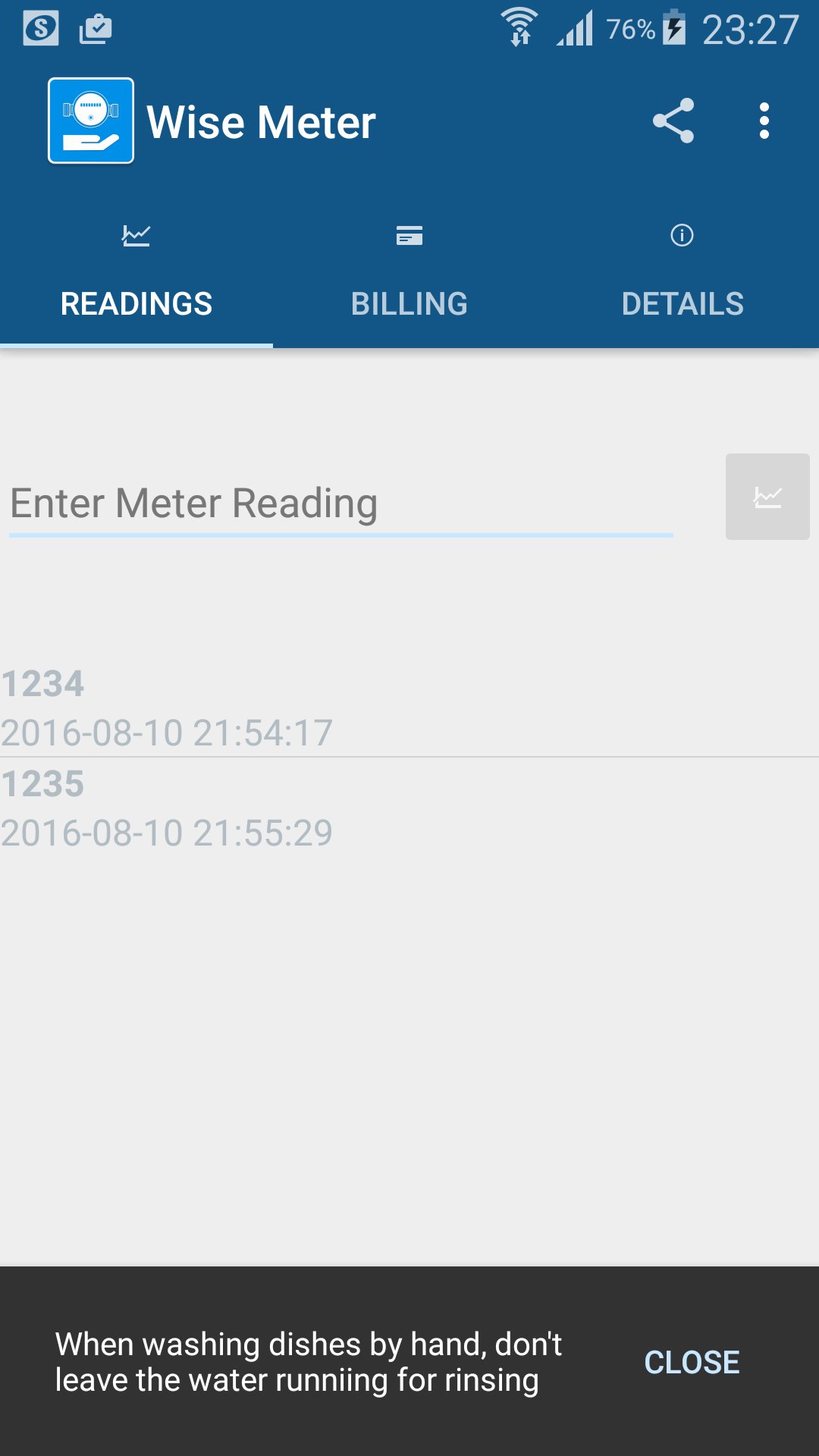 Track your water usage by manually entering the meter readings on your meter and your usage and cost will be automatically calculated for you.
