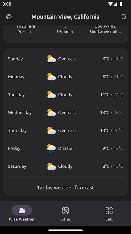 Wise Weather's user interface is a true masterpiece, blending functionality with aesthetics in perfect harmony. The app's modern and minimalist design ensures a delightful and intuitive experience, making weather tracking a joy rather than a chore.