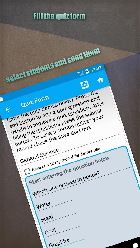 This free student portal is a complete quiz app as well. Teacher can generate quiz and send to students. This quiz app helps Teachers and students to save quiz for further use. Saved quizzes can be reused again. The quiz app will improve your learning by helping you solving quizzes. It is an online quiz app or cloud quiz app that stores quiz on the internet.