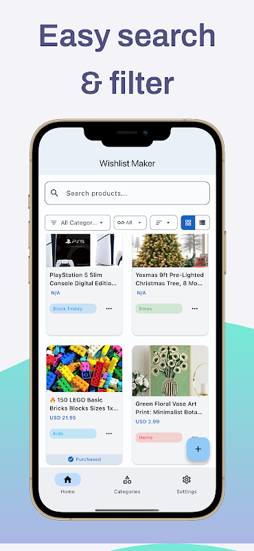 Custom Categories - Organize your wishlist with personalized categories and color-coded tags