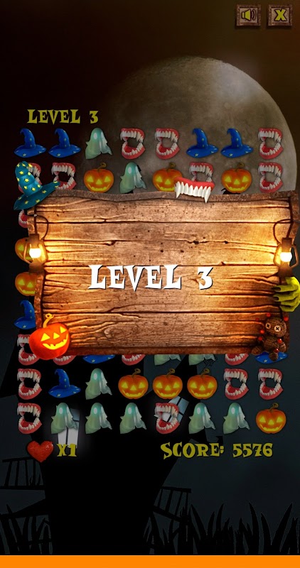 💬 There are Halloween candies in assorted colors. If you move the candy with your finger and align 3 or more candies of the same color side by side, it will pop.