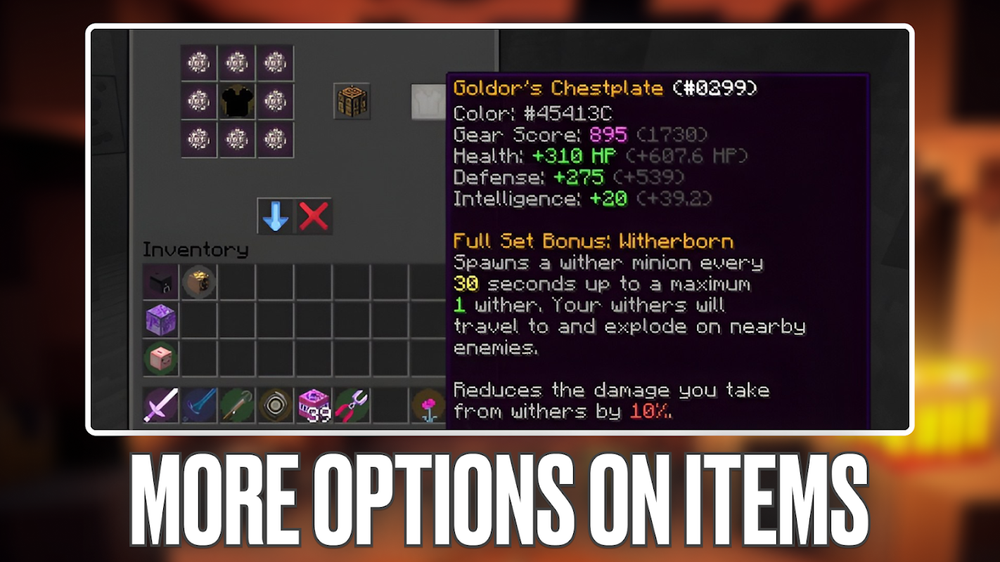 Wither Armor Mod for Minecraft are addons that logically end the fight 💥 against one of the strongest monsters 👾 Mincraft game, providing increased resource drop, craft from which gives us Armor Mods in Minecraft PE 🔥. Many of our friends know that this boss and monster is not an easy opponent at all 👀, Wither Storm Mod for MCPE sometimes can even complicate our survival, because it adds to the Bedrock world 🌏 a stronger monster - giant, whose attack has increased damage and more development stages ⚡️.