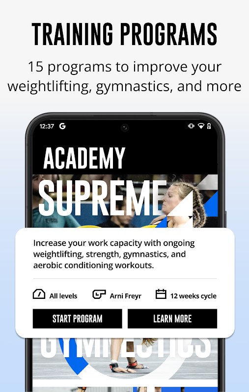 Train Like a Champion: Choose from 15+ training programs, designed for all skill levels, across Cross-training, gymnastics, weightlifting, and more.