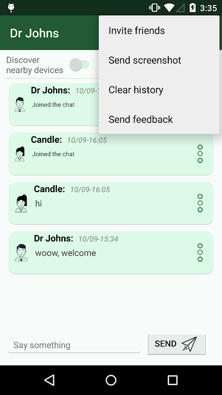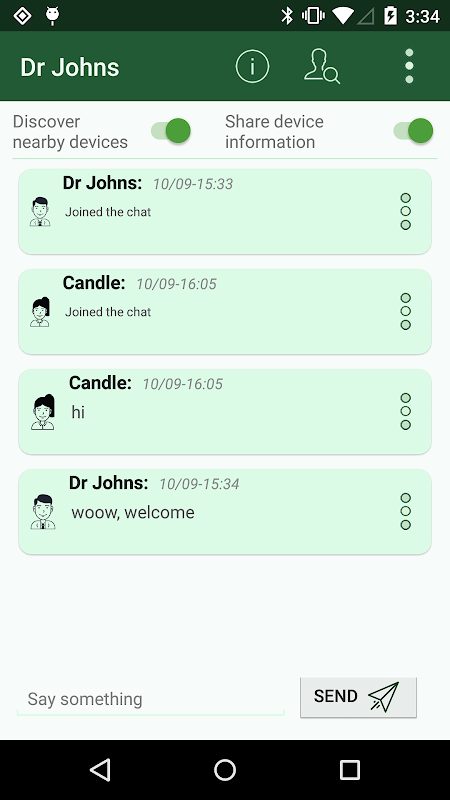 App is using NearBy APIs of Google to connect to other users which are in 30 meters distance of you.