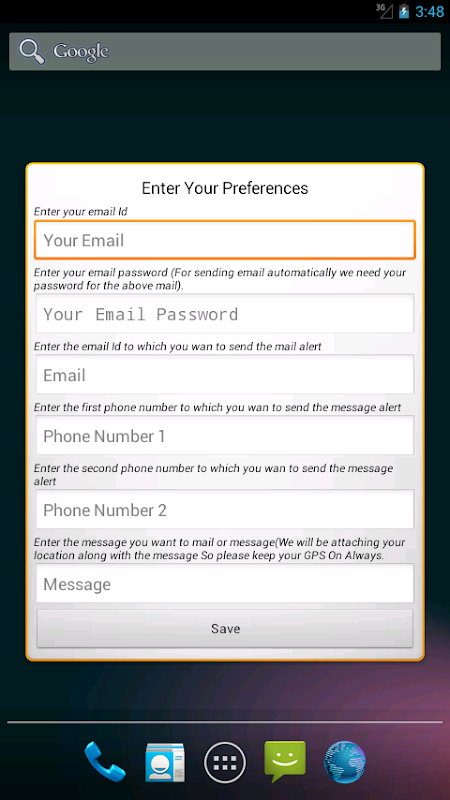 1) At first user have to save some details.These details include:Email address and password of the user,
