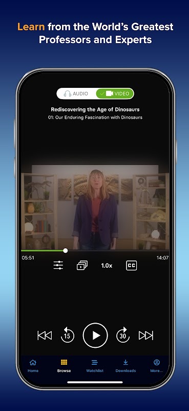 The Great Courses grants seamless online and offline access to our extensive library of online courses, empowering you to learn and grow at your own pace. Existing users can sign in to access their purchases and subscription content, while new users can register and subscribe directly within the app to access thousands of educational videos online and offline for one low price.