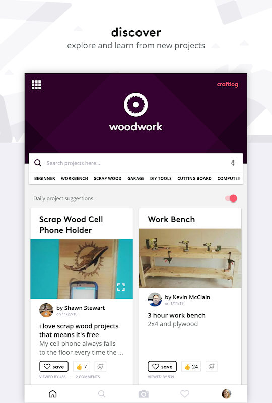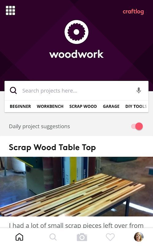 The woodwork app is a dedicated space to find and post any woodworking projects you might encounter.