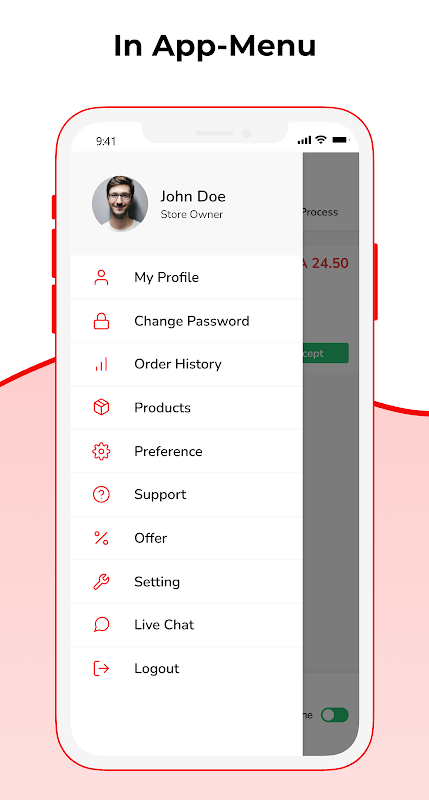-Manage store details like store time, manage product status, packaging charge, delivery radius, minimum order amount, Estimated delivery time, and more