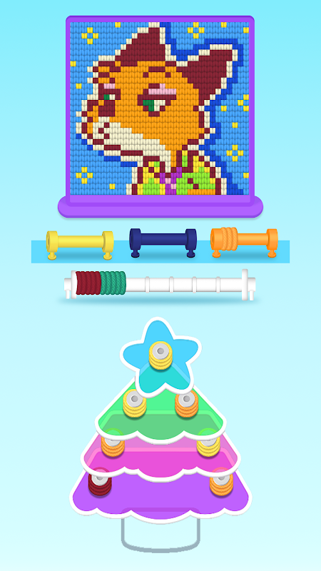 Dive into a colorful world filled with soft textures and creative challenges. Your goal is to pick the right yarn spools and sort them into matching color bars. As each bar fills up, a beautiful pixel art image begins to take shape. With each completed artwork, you’ll experience the simple joy of bringing order and color to chaos.