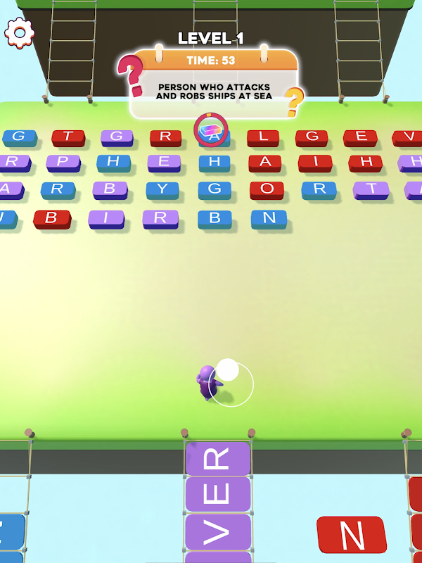 Find the letter bricks you need according to the hint you're given. You must find them quickly before the time runs out!