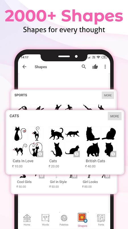 • In case you don't find your desired shape or font, just request us from the app and we will add them within 3 working days. Any Shape within 3 working days GUARANTEED.