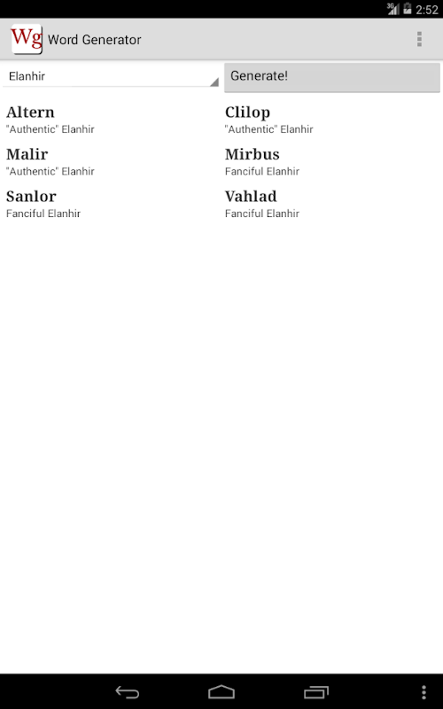 Try the paid version of the app: "https://play.google.com/store/apps/details?id=de.jochenLinnemann.wordGeneratorPro"