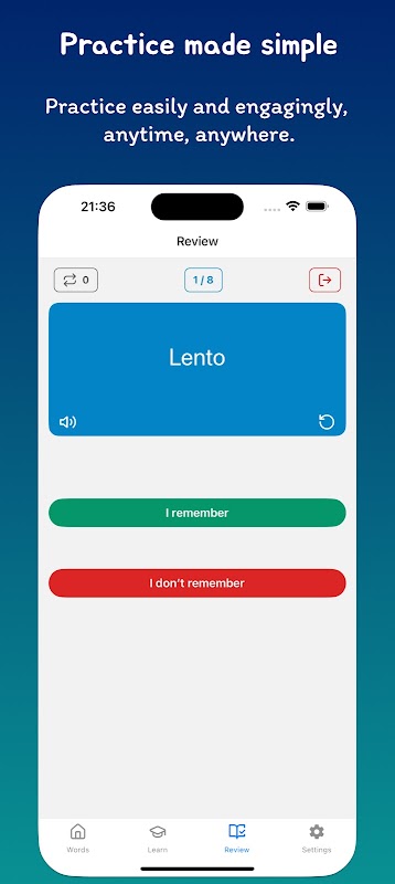 • Review & Practice: Reinforce your knowledge with regular review sessions designed to help you retain new words and phrases.