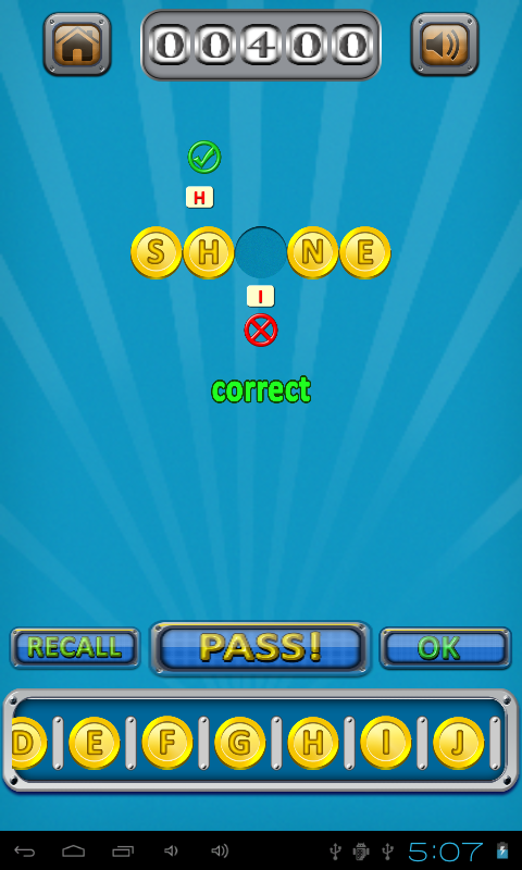 You will be presented with a challenge. Incomplete words will be shown and you need to complete the word using Gold Coins at the bottom of the screen with Alphabets embossed on each of them. Some words will look easy -- while some will not!