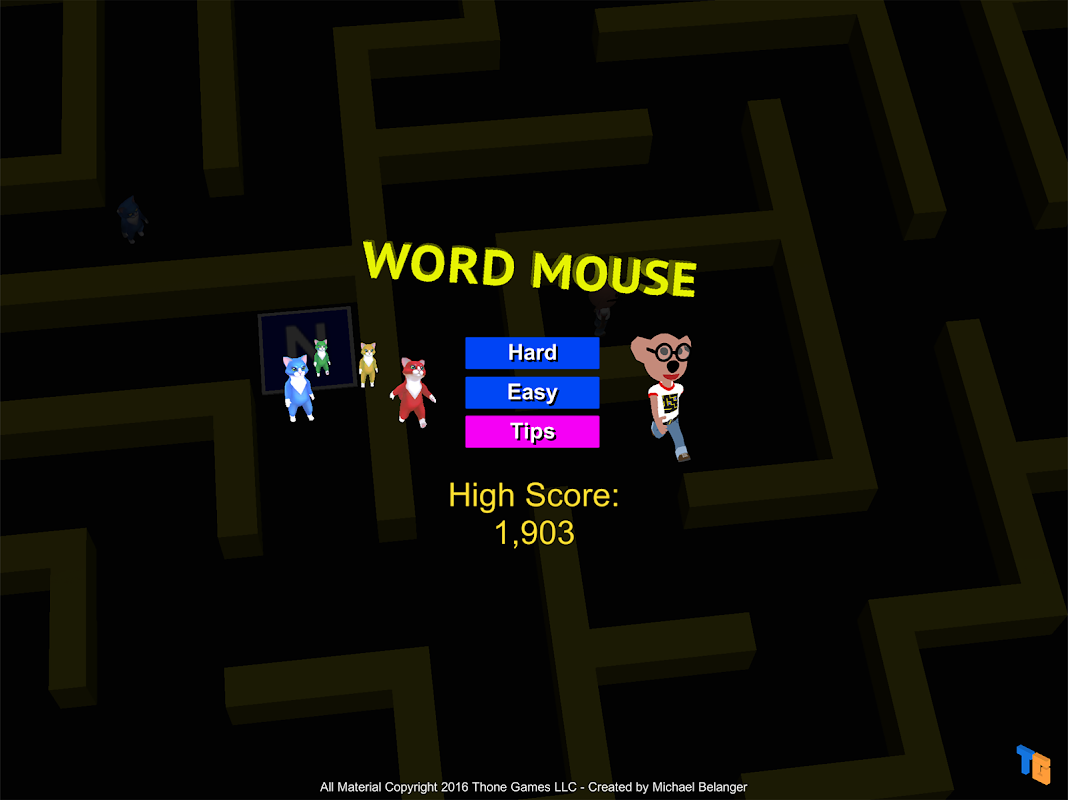 Word Mouse is full of fun and challenge! Word Mouse picks up letters to complete the puzzle. But watch out for those Cats! Run feverishly from the Cats while battling twisters, earthquakes and lots of fun surprises!