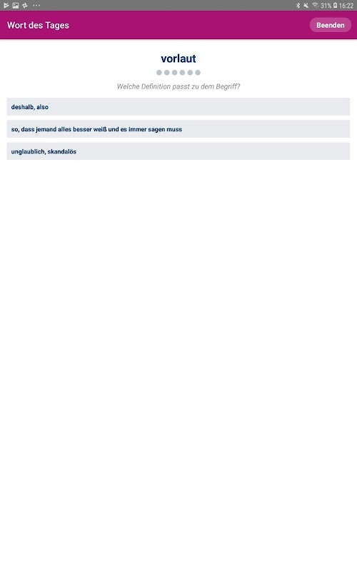 ✓ You cannot only access the current word of the day but also the word archive of the last 30 days