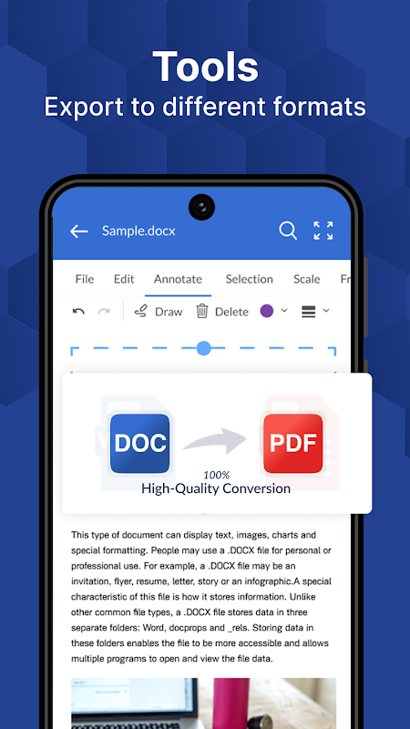Docx Reader or docx Viewer is the best & fast way of reading Word documents on your mobile phone. Word Viewer is a simple & lightweight app. Docx file readers represent all formats of documents in the best way. This word office app helps to view, read, & edit Word files in seconds.