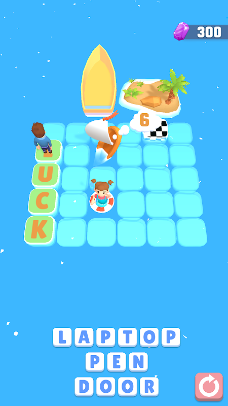 You can build paths only from words. At the same time, on the way to the island there are obstacles and girls who also need to be saved.