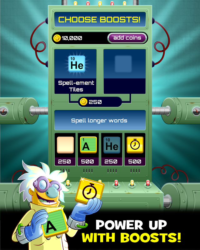 In this fast-paced spelling game, your words power Dr. Von Vocab’s crazy lab! Grab letters as they whiz by on conveyor belts and form words as fast as you can to keep Dr. Von Vocab’s experiments going. Are you ready for Word Science, a new word game that only science could create?