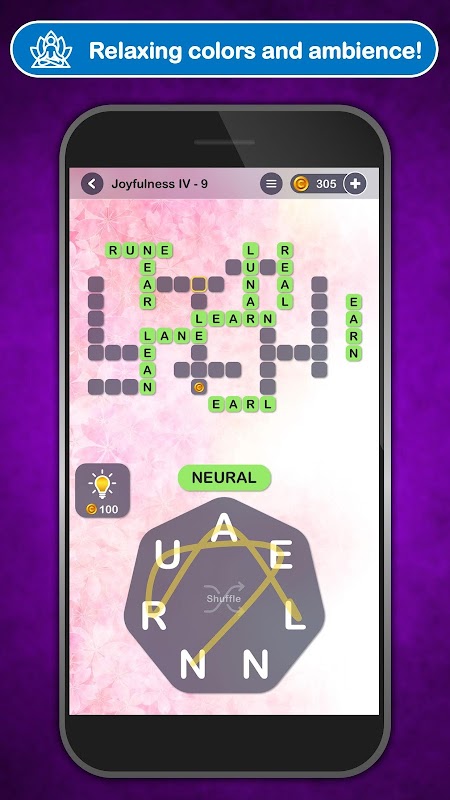 Achieve mindfulness with this soothing word puzzle. Allow your stressors to melt away as you progress from one meditative level to the next. Hypnotic ambience and mesmerizing word play combine in this all new experience from the makers of Letter Soup.