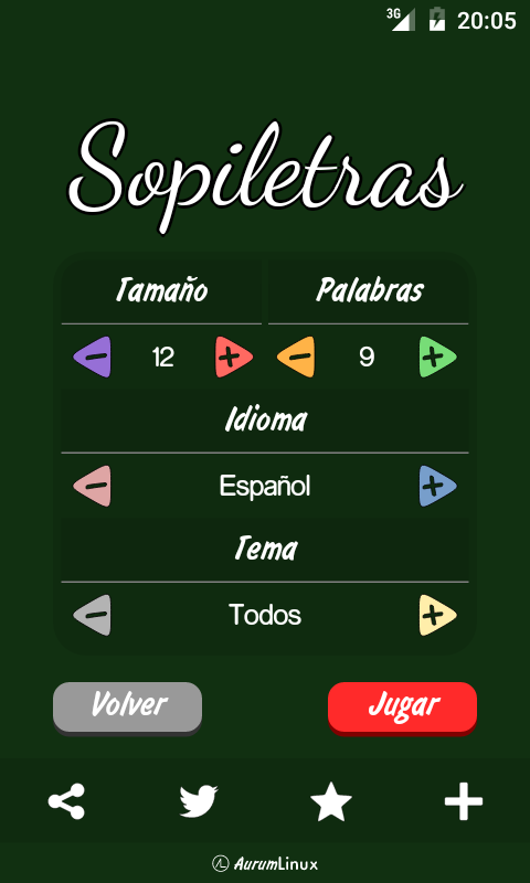 - Normal: Set up your own word puzzle choosing the number of rows and columns, and the number of words to find. Each puzzle will be different!