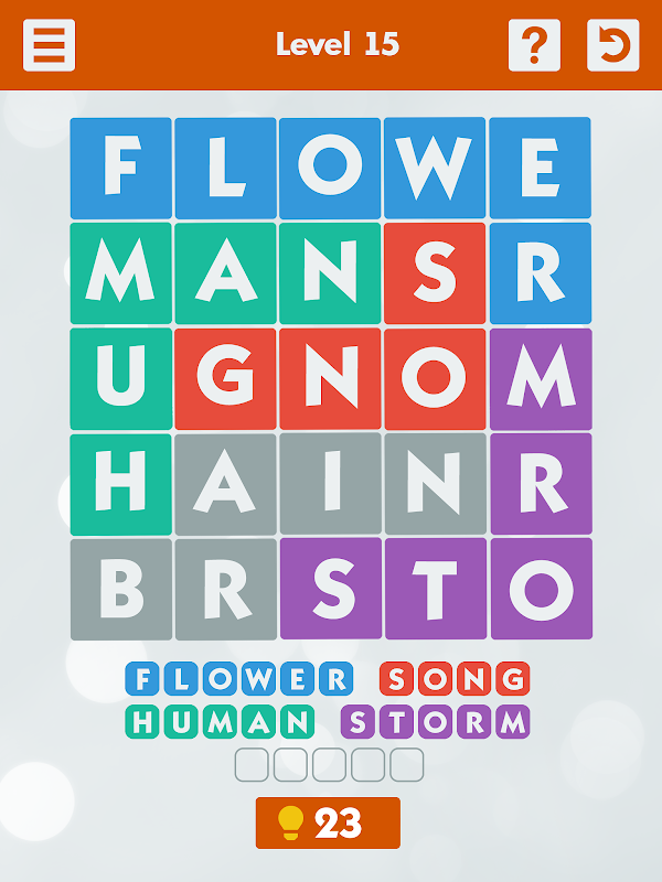 The game is very simple - you can see the field with letters. You need to find hidden words by swiping the finger vertically and horizontally across the screen of your phone.
