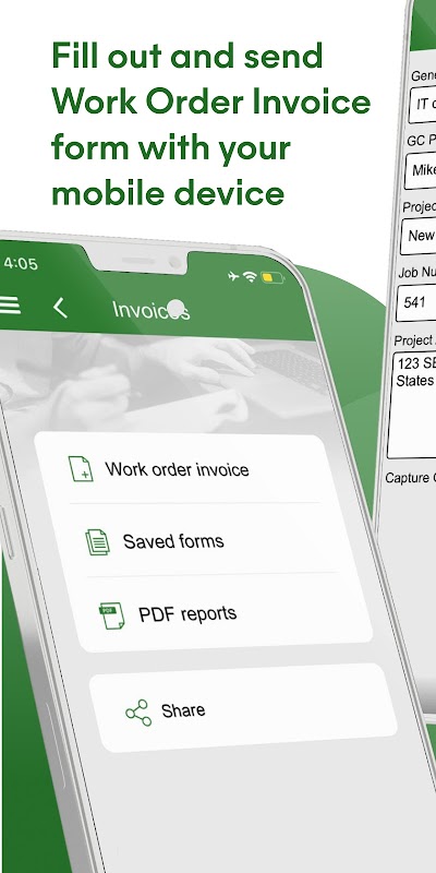 Quickly generate contractor invoices and work orders. You can customize this app to reflect your own company easily and affordably. Complete the form directly from your tablet or smartphone, and send it via email (or you can print it too!) when you’re done.