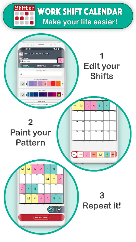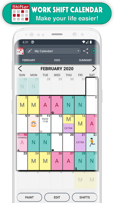 This app is designed for shift workers and people who need to organize their day to day basis and thus not to miss any appointments.