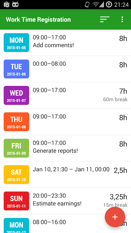 This application will take care of your work time registration. Save the times you have worked and check them in a nice looking summary. Filter your work times on start- and end date and see how many hours you have worked that period. Export them in a easy-printable HTML format!