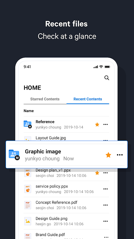 Check important files right from the WORKBOX home screen with user-friendly UI that immediately shows “My Folders” and “Shared Folders” at a glance.