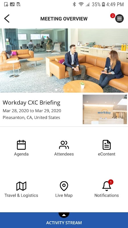 Workday CXC is the perfect app for your important Customer Experience Center (CXC) meetings. The app provides a central place for Workday employees, customers, and meeting attendees to see upcoming Customer Experience Center meetings, get room names, maps, agenda items, presenter bios, travel and logistics options. The robust notification system can inform attendees of room changes, eContent updates and more. Integrated surveys allow users to easily give feedback directly within the app. Need to find a room or other point of interest? Use the built-in navigation and the app will guide you there with ease!