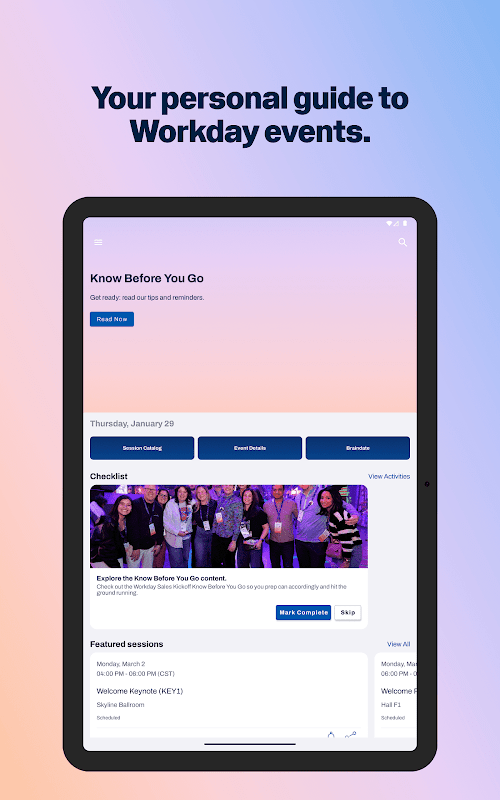 Attending a Workday event? Download our companion app for quick access to everything you need to make the most of the day. See session schedules, view venue maps, connect with other attendees, and more. All in one easy-to-use app.