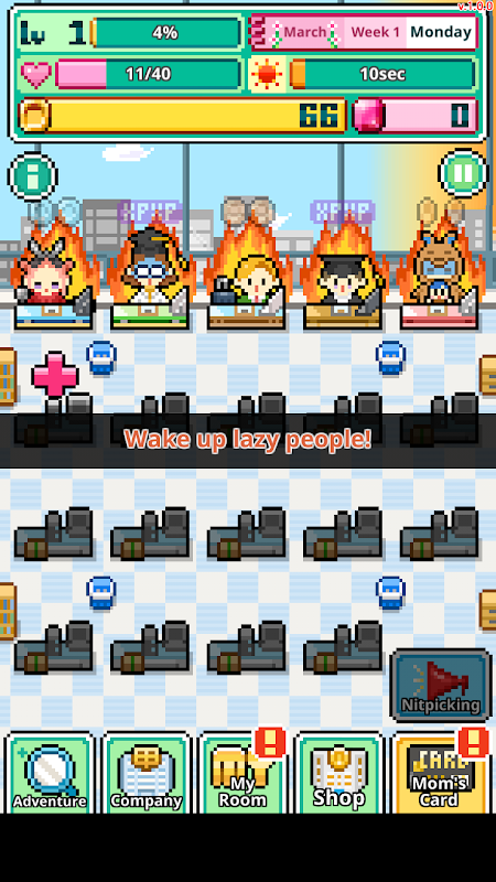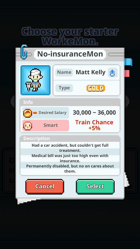 "WorkeMon!" is a business simulation game where you get to experience the life of a rich CEO, running a company you inherited from your rich father, the owner of richest business in the world, "Gold Spoon Group".