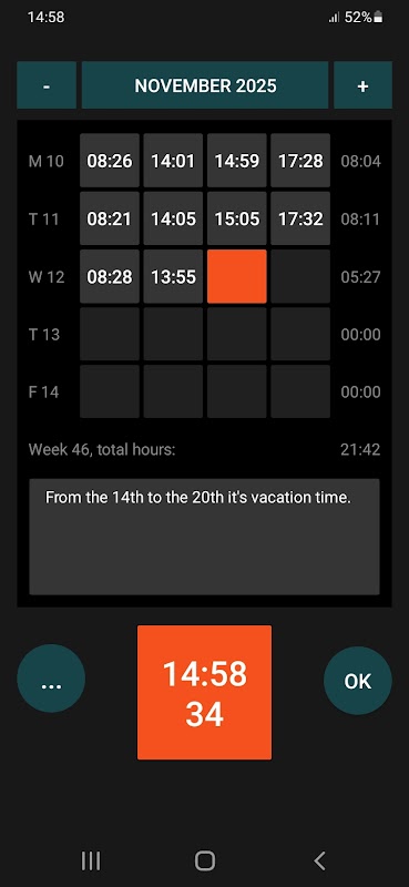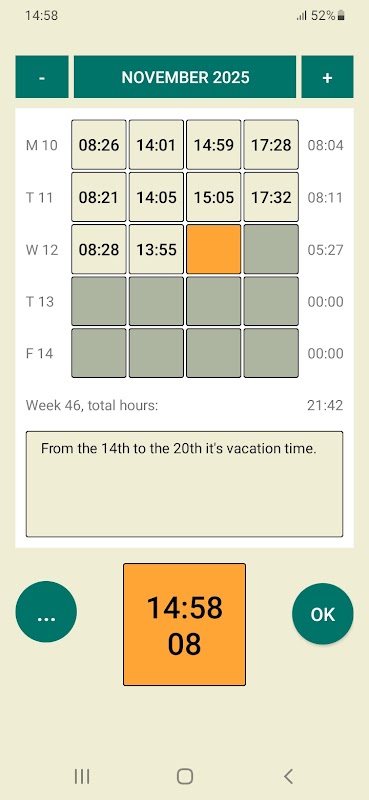 Quick annotation for your personal control of hours worked.