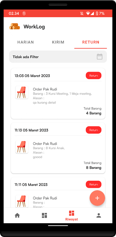 This application is designed for internal Worklog recording and tracking work production. From order processing to daily delivery and returns