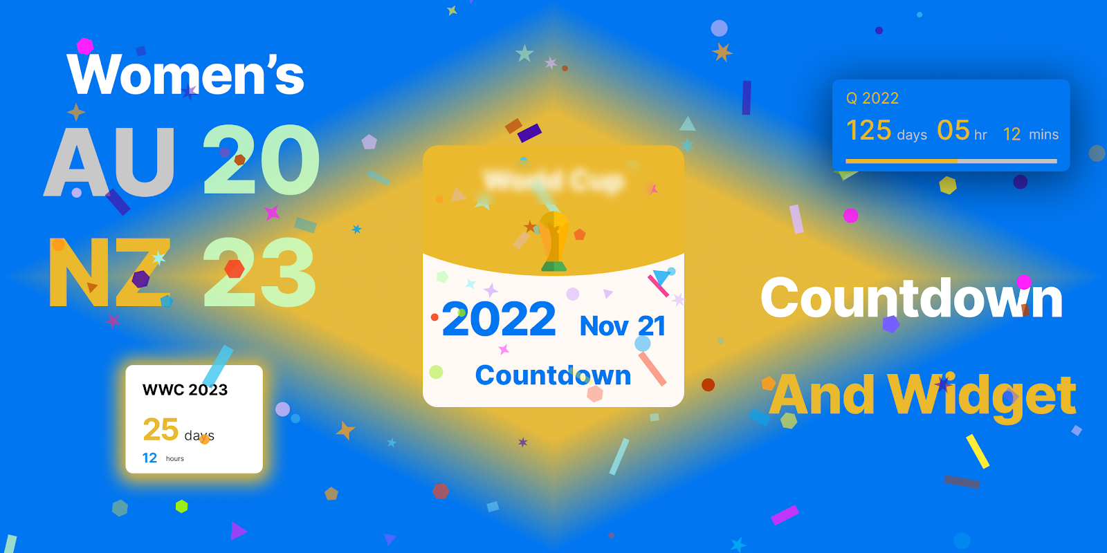 A simple collection of widgets with countdown to Women's 2023 World cup kick off